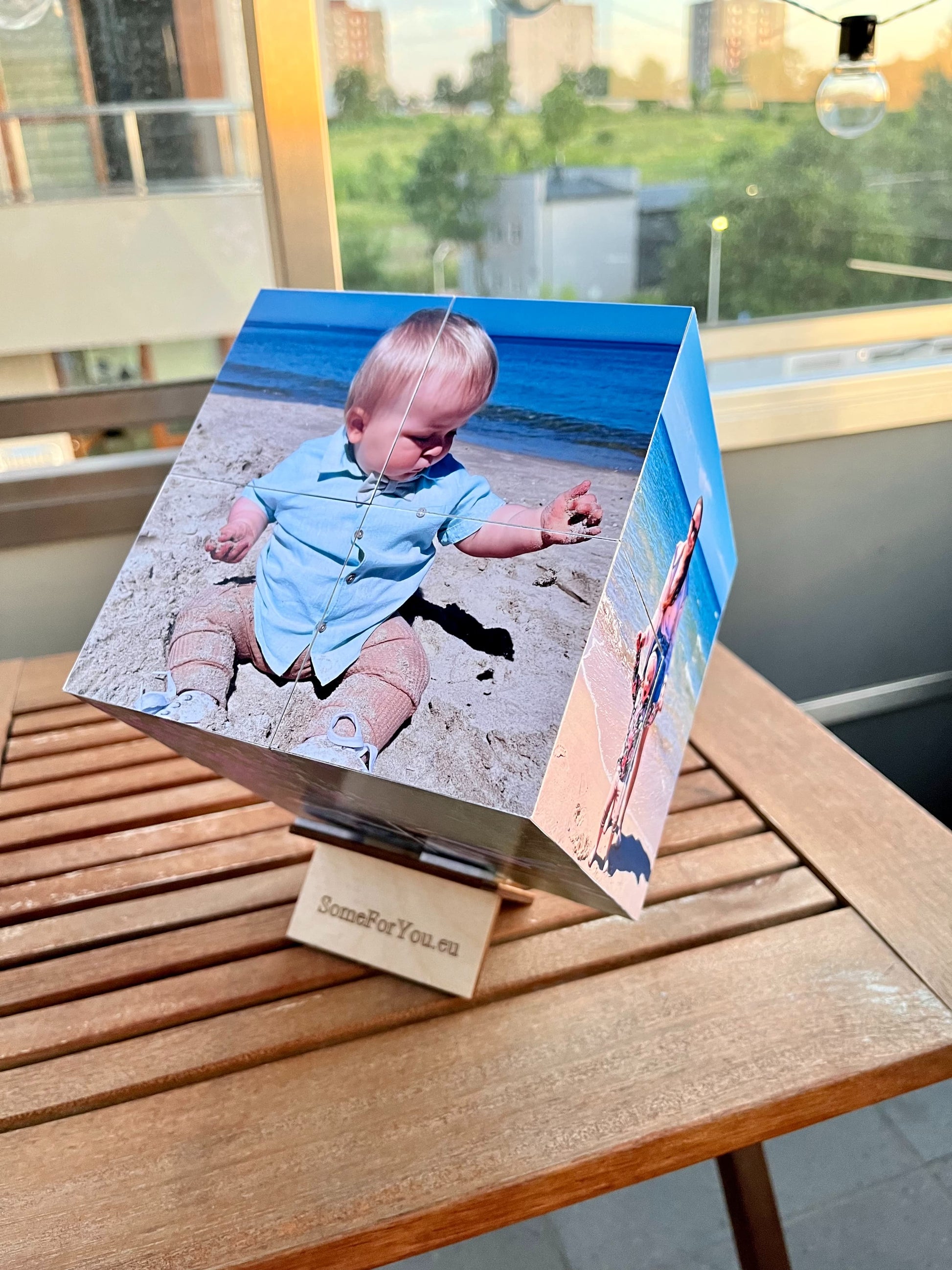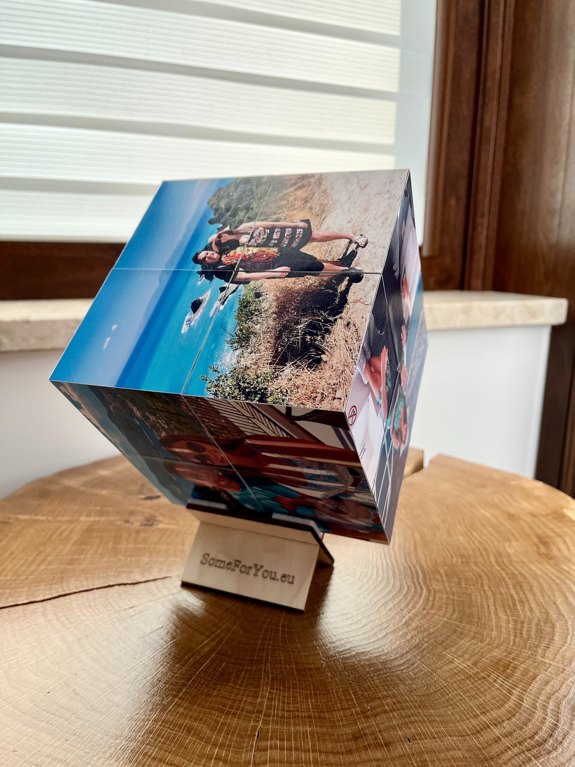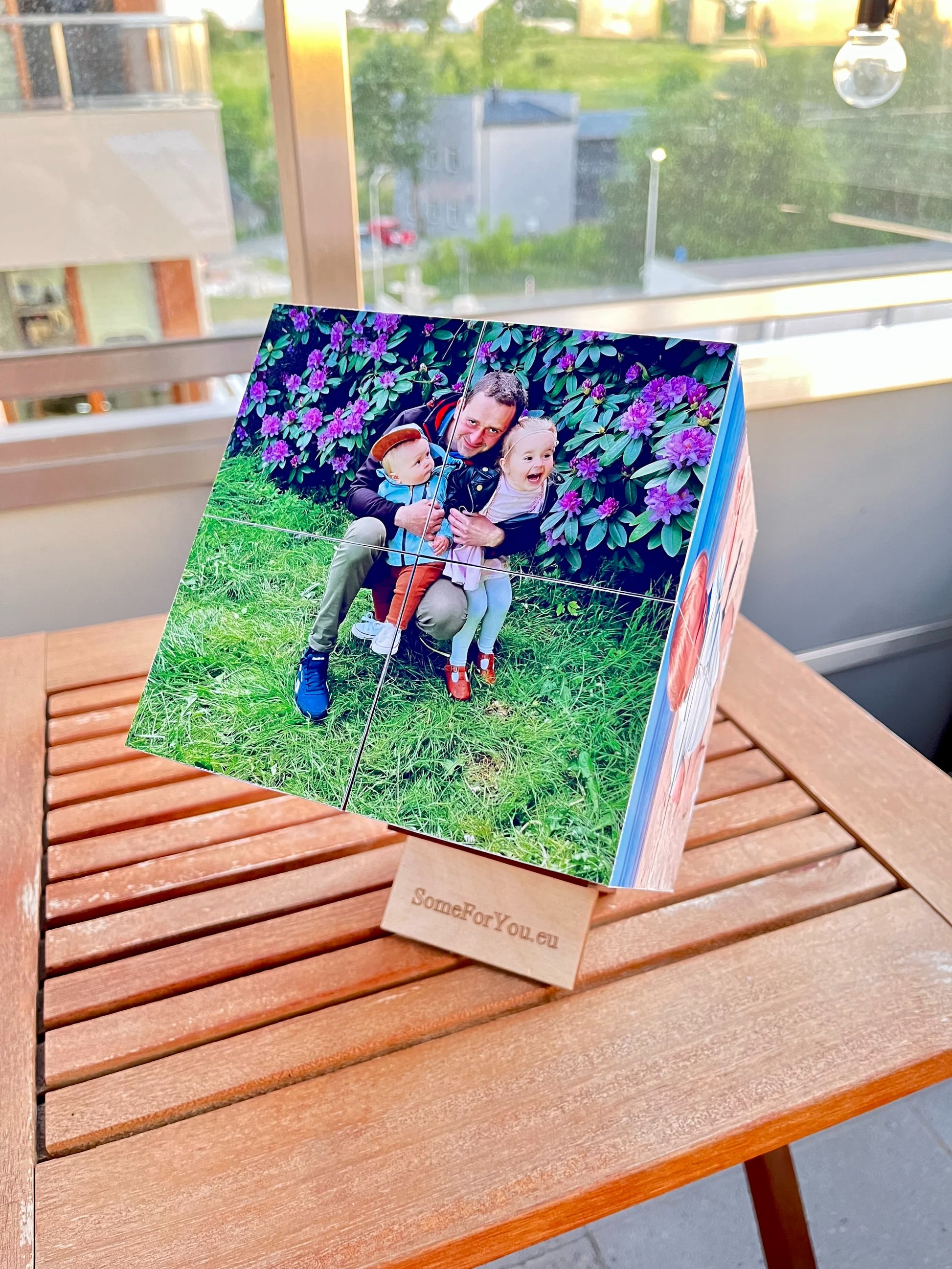 - Fotokostka se skládá z 8 menších dřevěných kostek, které jsou spojeny správným způsobem (zaručujeme, že fotokostka se nerozpadne).