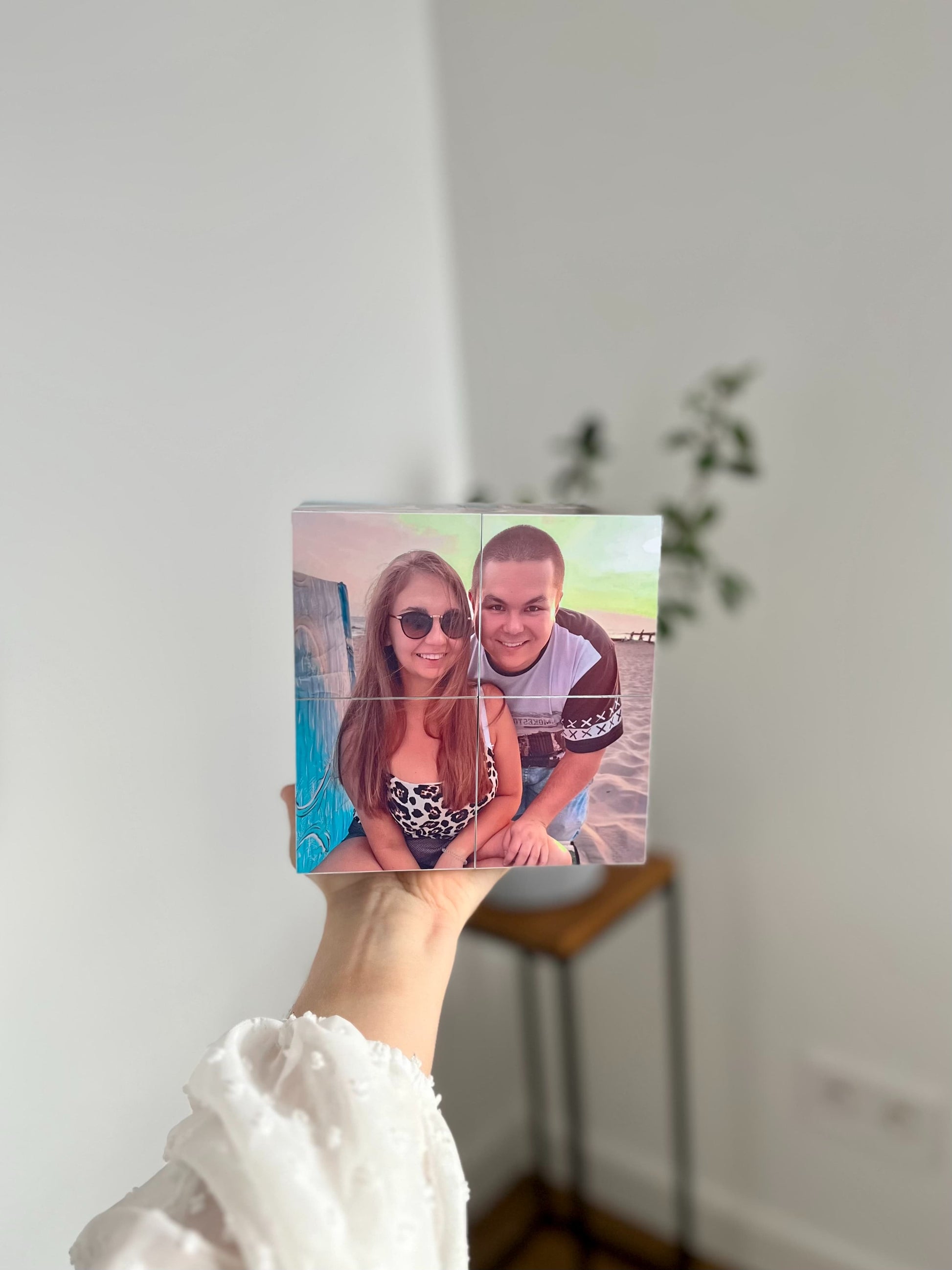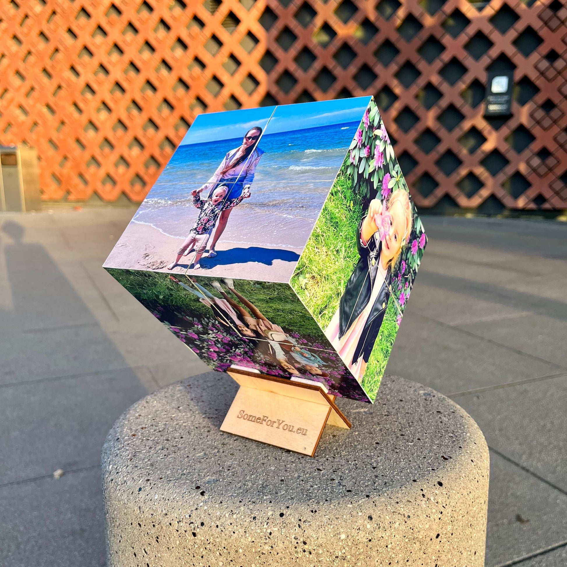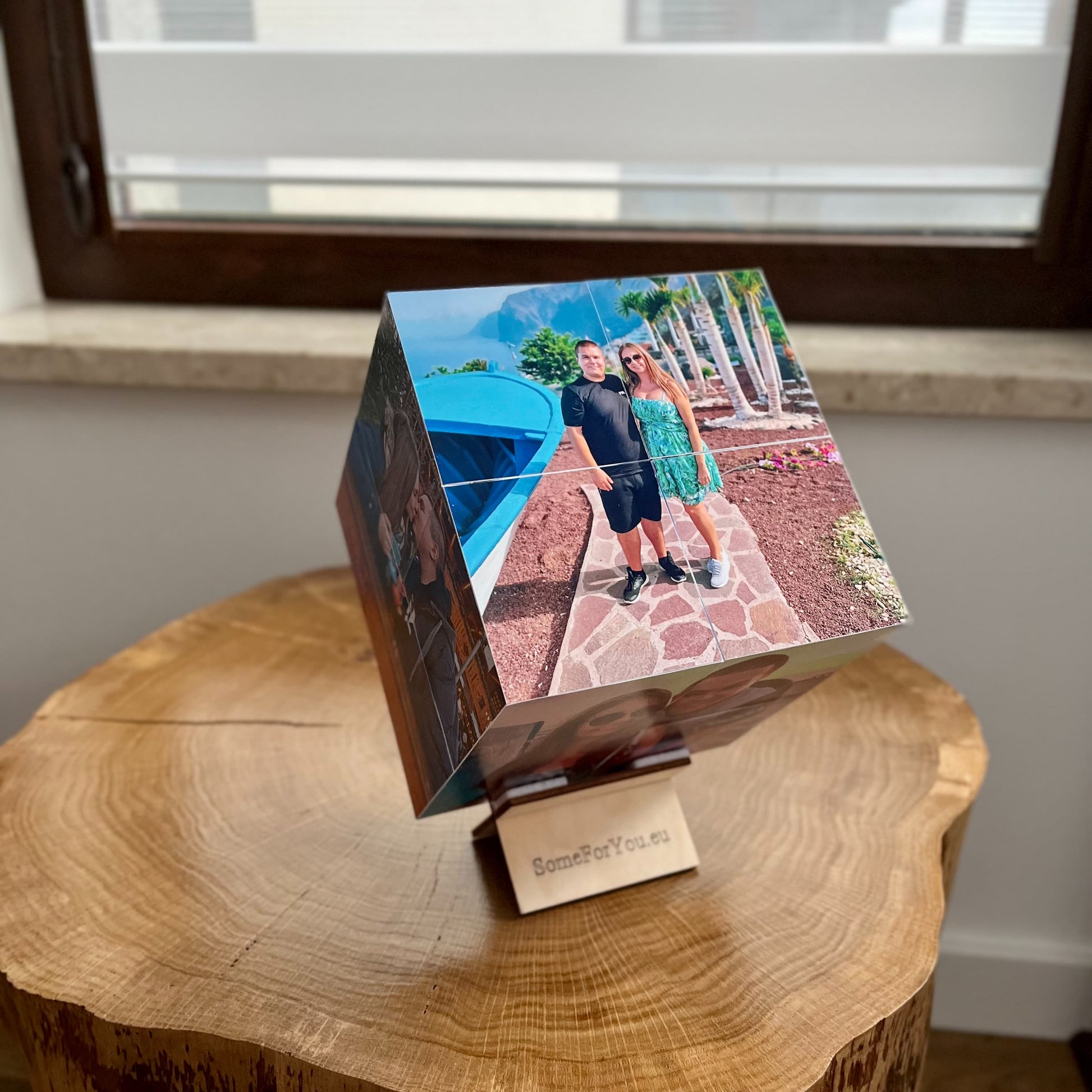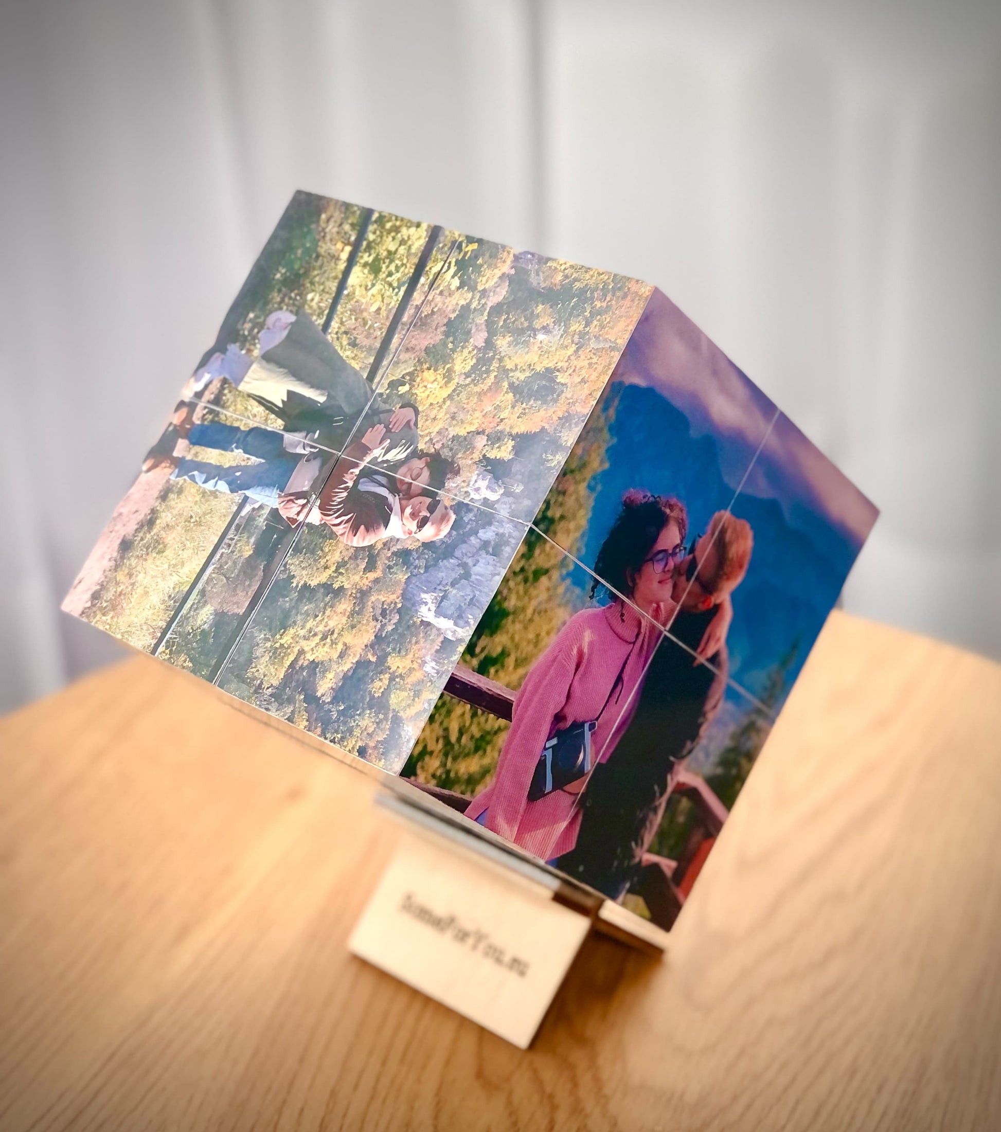 - Fotokostka se skládá z 8 menších dřevěných kostek, které jsou spojeny správným způsobem (zaručujeme, že fotokostka se nerozpadne).