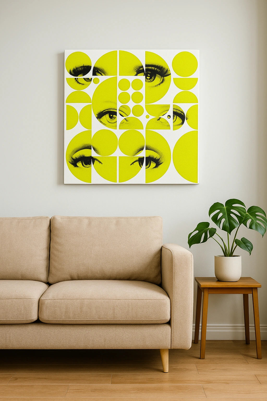 „Oczy w Geometrii” to obraz, który patrzy… i zostaje w pamięci. Sztuka z osobowością, która zaintryguje i ożywi każdą przestrzeń.