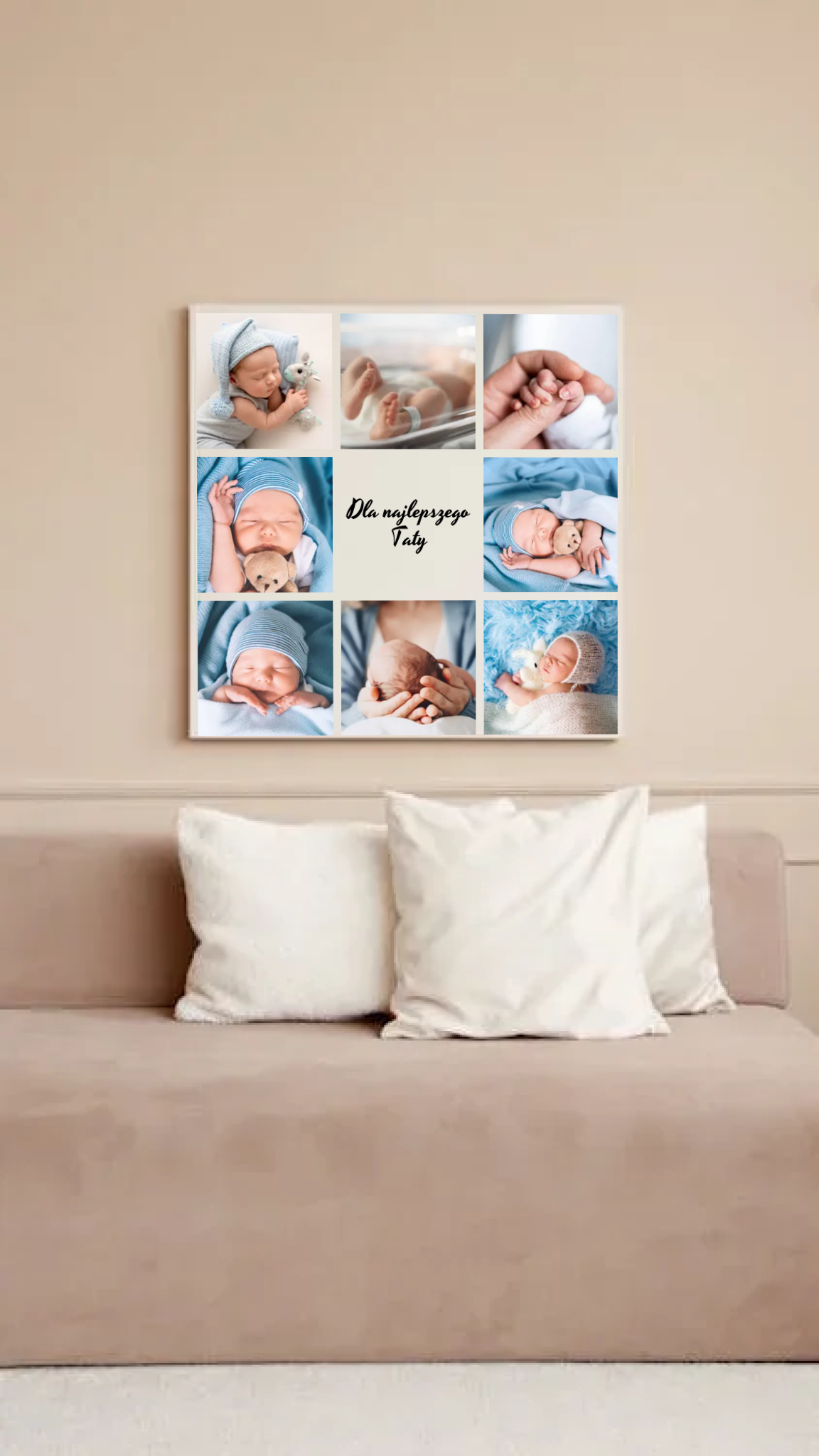 Szukasz wyjątkowego prezentu dla Taty, który wywoła uśmiech, wzruszenie i dumę? Stwórz dla niego personalizowany obraz na płótnie w formie kolażu – dekorację wypełnioną wspomnieniami, które tworzą historię Waszej relacji.