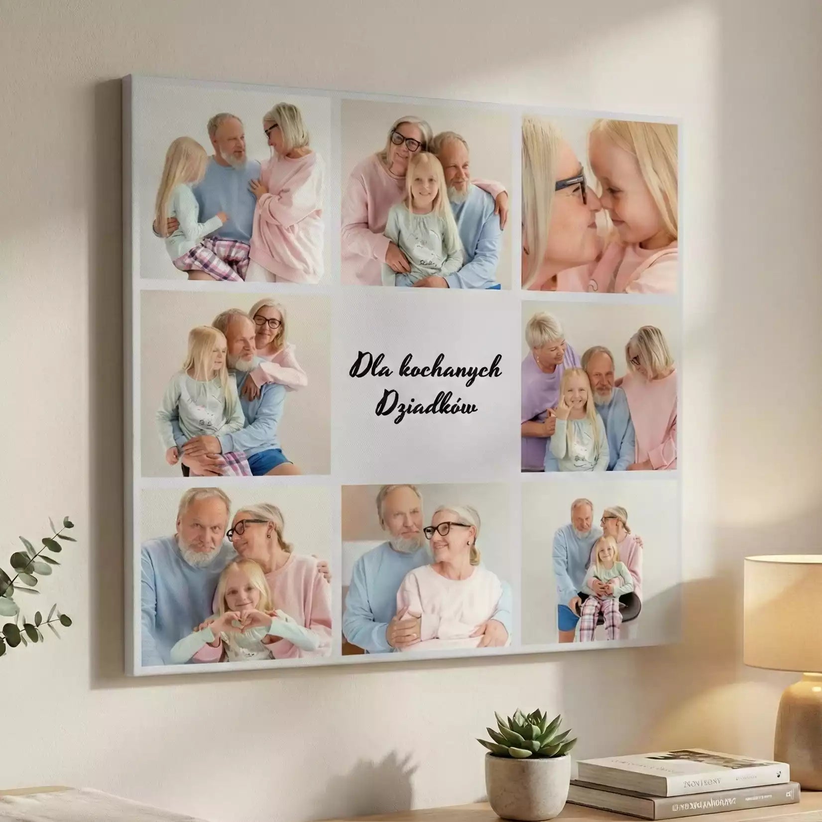 Szukasz idealnego prezentu, który wzruszy i zachwyci Twoich dziadków? Stwórz wyjątkowy obraz na płótnie w formie kolażu z 8 zdjęć – personalizowaną dekorację, która stanie się prawdziwą ozdobą ich domu i pięknym przypomnieniem najcenniejszych chwil spędzonych z rodziną.