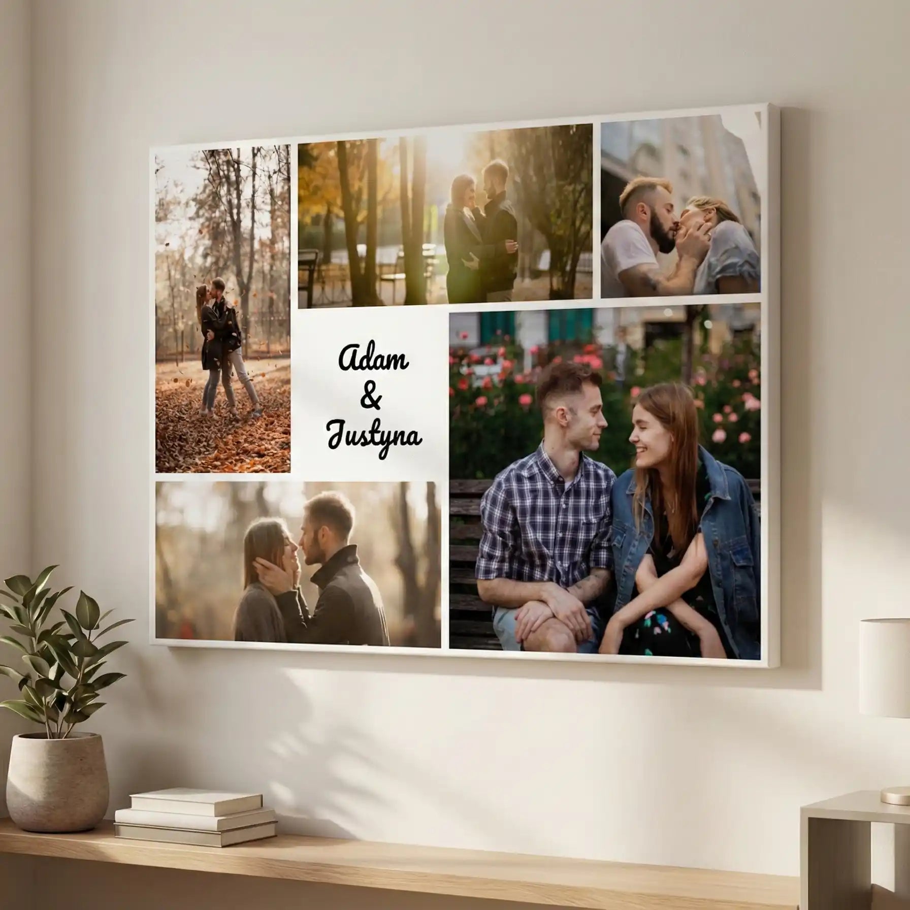 Obraz na płótnie w formie kolażu to unikalny sposób na podkreślenie Waszej relacji i zachowanie najważniejszych wspomnień w wyjątkowej formie. Jego personalizowany charakter sprawia, że to więcej niż dekoracja – to pamiątka pełna miłości i emocji.
