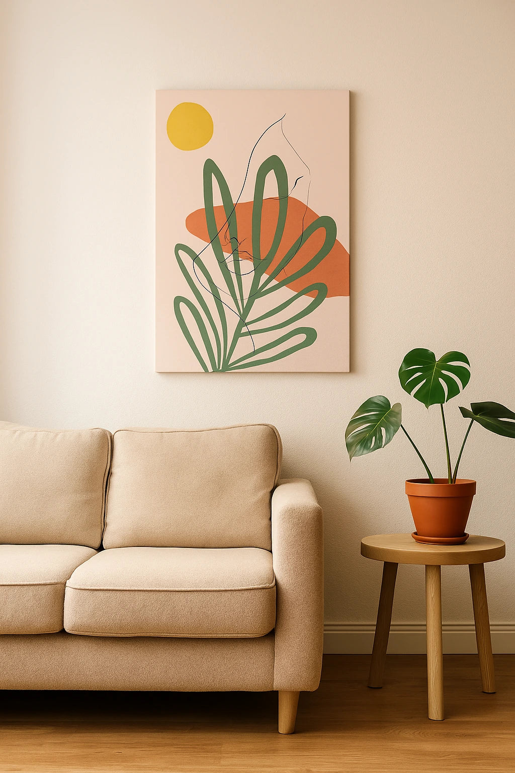 Obraz doskonale prezentuje się w jasnych, minimalistycznych aranżacjach – w salonie, sypialni, domowym biurze, pracowni czy strefie relaksu. To również świetny pomysł na prezent dla osób kochających naturę, botanikę i estetykę slow living.