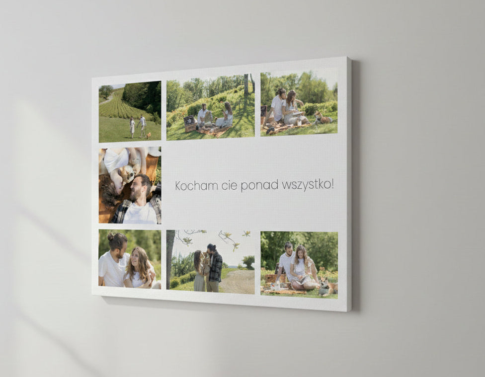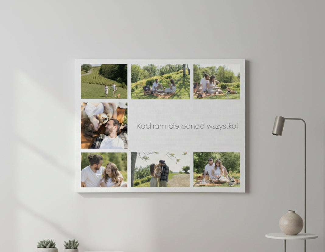 Obraz na płótnie w formie kolażu to więcej niż dekoracja – to pamiątka pełna miłości i wspomnień. Każde spojrzenie na ten obraz przypomni o najpiękniejszych chwilach spędzonych razem, czyniąc każdy dzień jeszcze bardziej wyjątkowym.